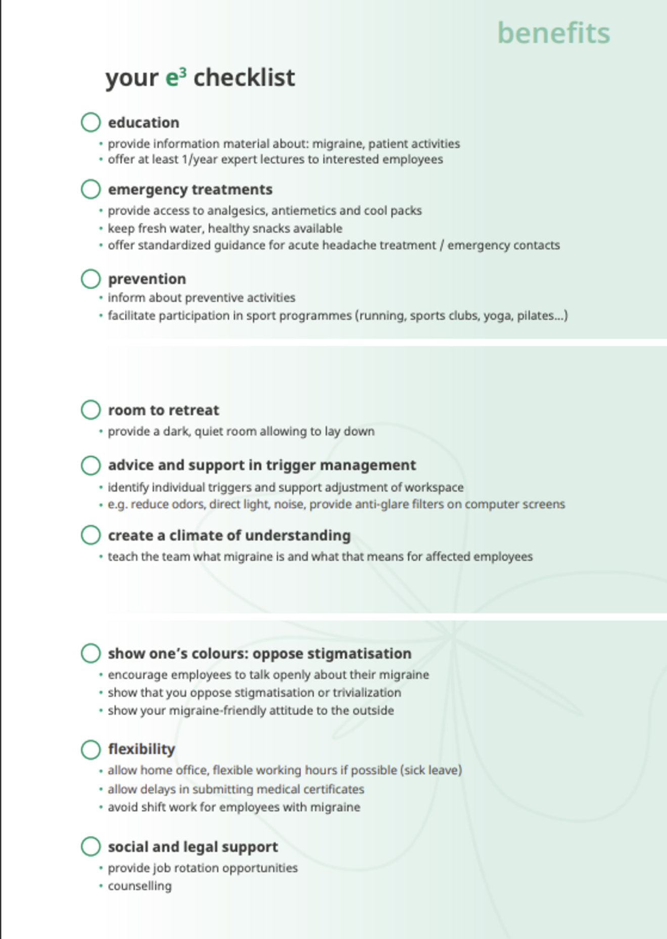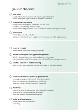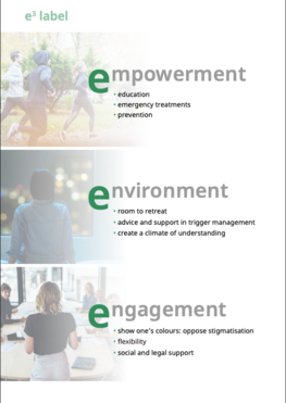 Promote your migraine friendly workspace with the e3 label. Encourage talents to join your company demonstrating optimal workspace conditions and show, that you are a progressive employer.