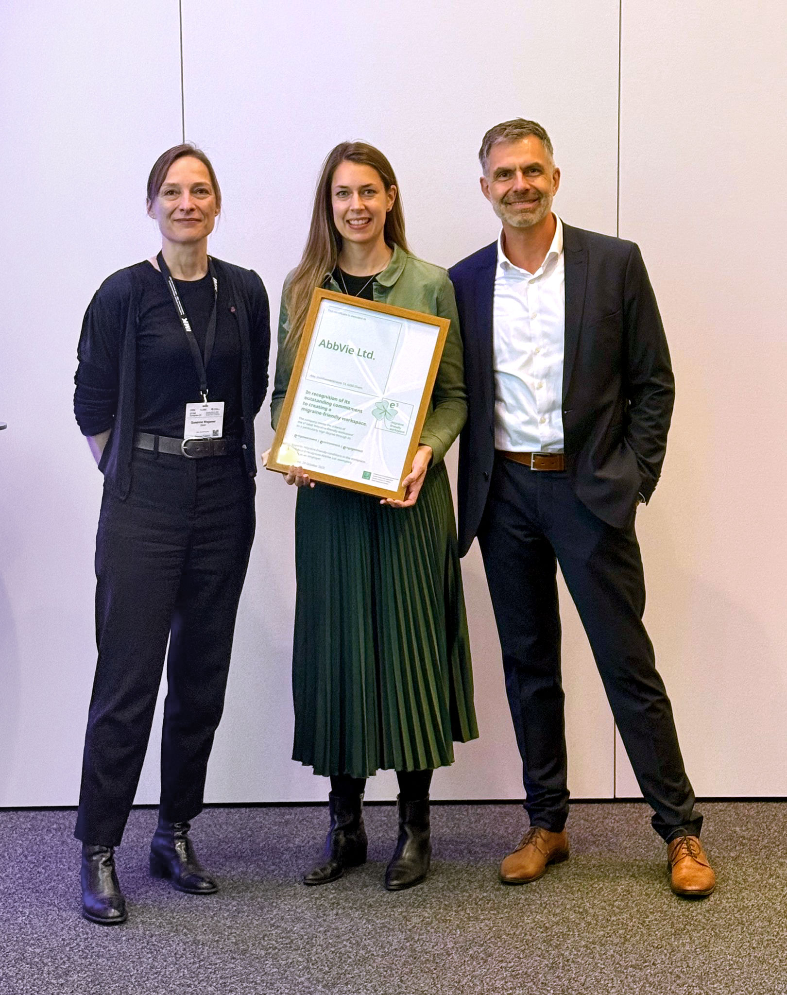 Am 31. Oktober 2025 wurden in Lausanne die ersten drei Unternehmen mit dem e³ Label – migraine friendly workspace ausgezeichnet.